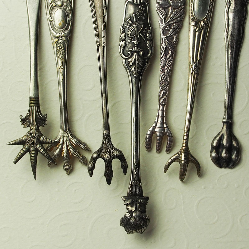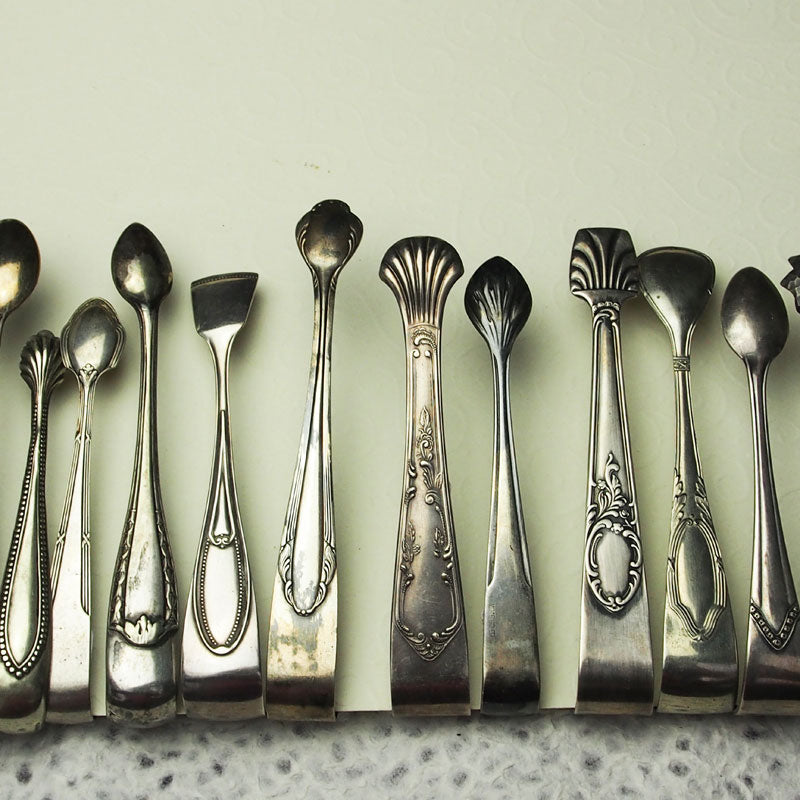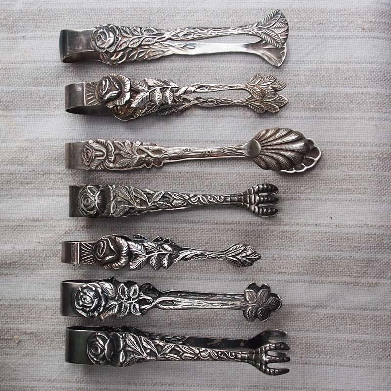 Wir waren lange auf der Suche nach passenden Räucherzangen. Die modernen sagten uns jedoch nicht zu, so dass wir auf Antikmärkten schließlich fündig wurden. Sie sind alle versilbert und unterschiedlich in Form und Aussehen und dadurch Unikate.