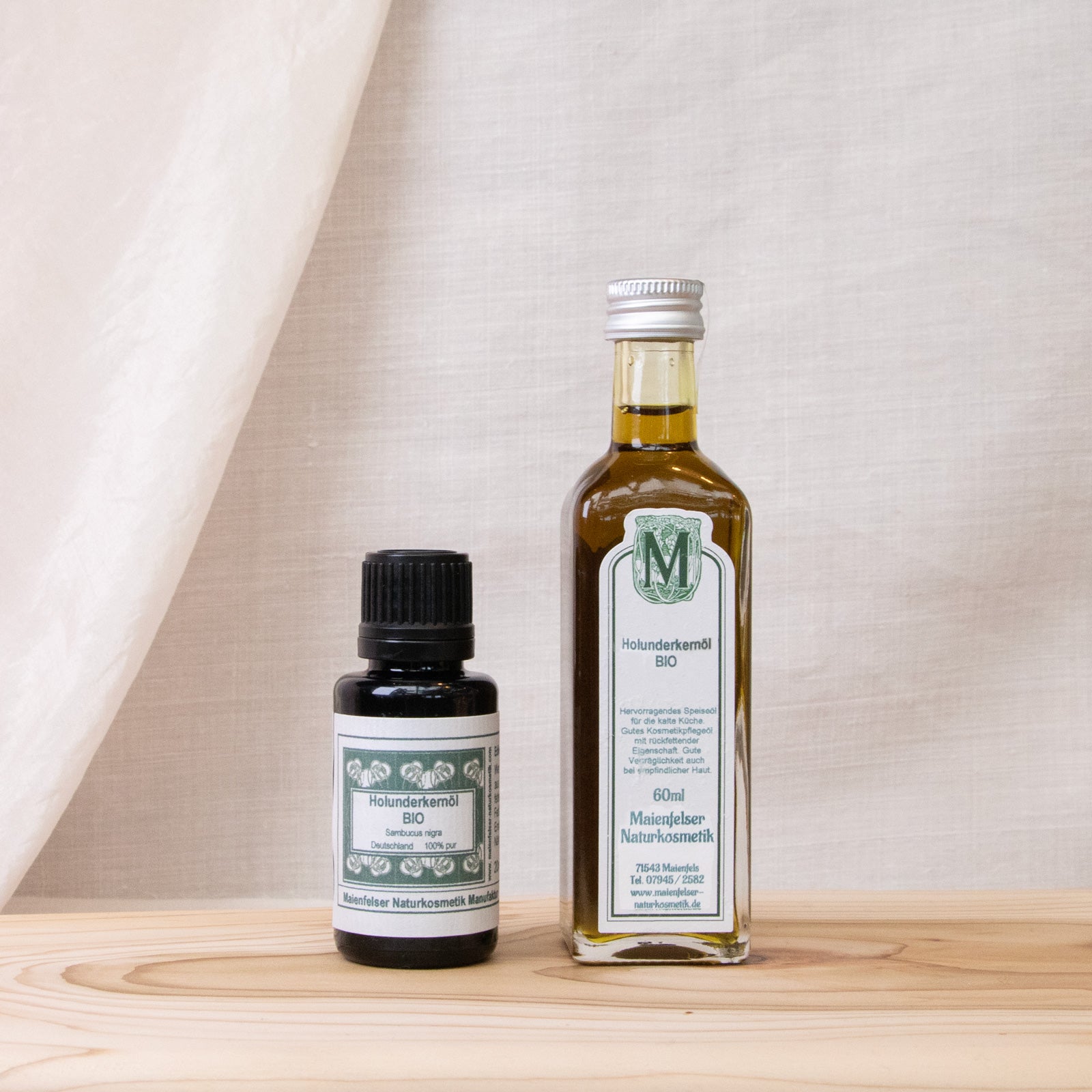 Wohl allen bekannt ist der Holunderbusch, häufig anzutreffen mit seinen wohlduftenden, weißen Blüten und den schwarzen Beeren. Viele Mythen ranken sich um diesen Strauch und wer einen Holunder im Garten stehen hat, darf sich glücklich schätzen. Aus den Kernen der schwarzen Beeren wird dieses kostbare Öl im Kaltpressverfahren hergestellt. Hier haben wir wiederum ein Beerenöl mit einer sehr hohen Konzentration der wichtigen Alpha-Linolensäure und einem hohen Anteil an Phytosterolen.