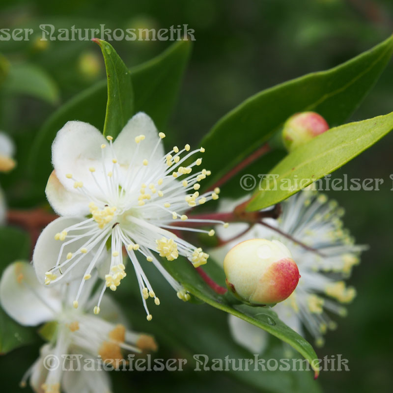 Diese Myrte ist sehr viel sanfter und milder als die anderen Arten, auch durch die Antrocknung der frisch geschnittenen Myrtenzweige vor der Destillation. Man verwendet dieses Verfahren noch bei anderen Kräutern, dass man sie ein paar Tage antrocknet und erst dann destilliert. Dies wird unter anderem auch bei manchem Lavendeldestillateuren praktiziert. Dieses Myrteöl hat eine sehr entspannende und beruhigende Eigenschaft und eignet sich dem zu folge auch gut zum Einschlafen. Ein paar Spritzer auf das Kopfkissen vor dem Schlafen gehen, erhöht das Schlafbedürfnis. Ebenso in einem Massageöl verwendet, erzielt es einen entkrampfenden, entspannenden Effekt.