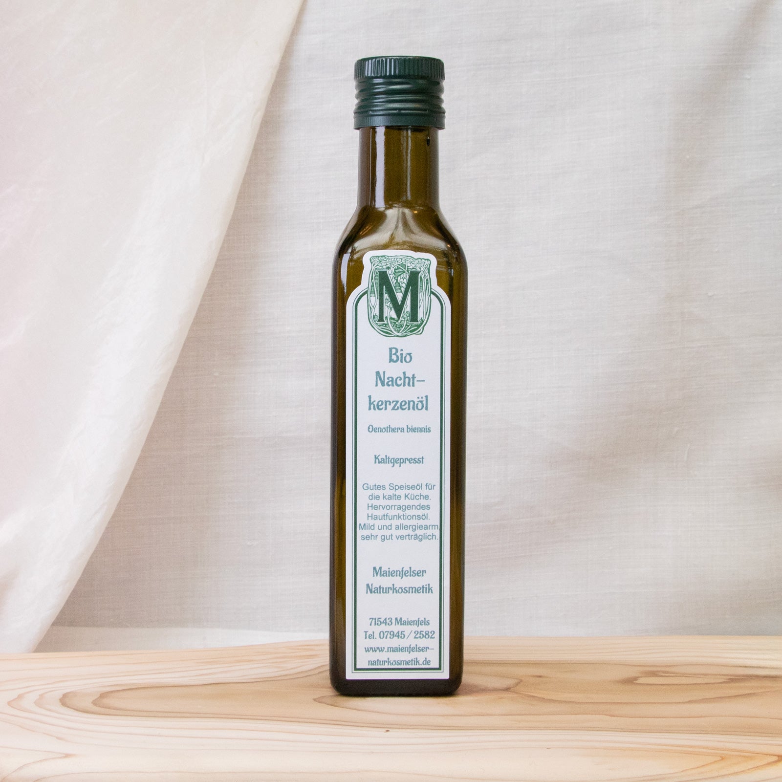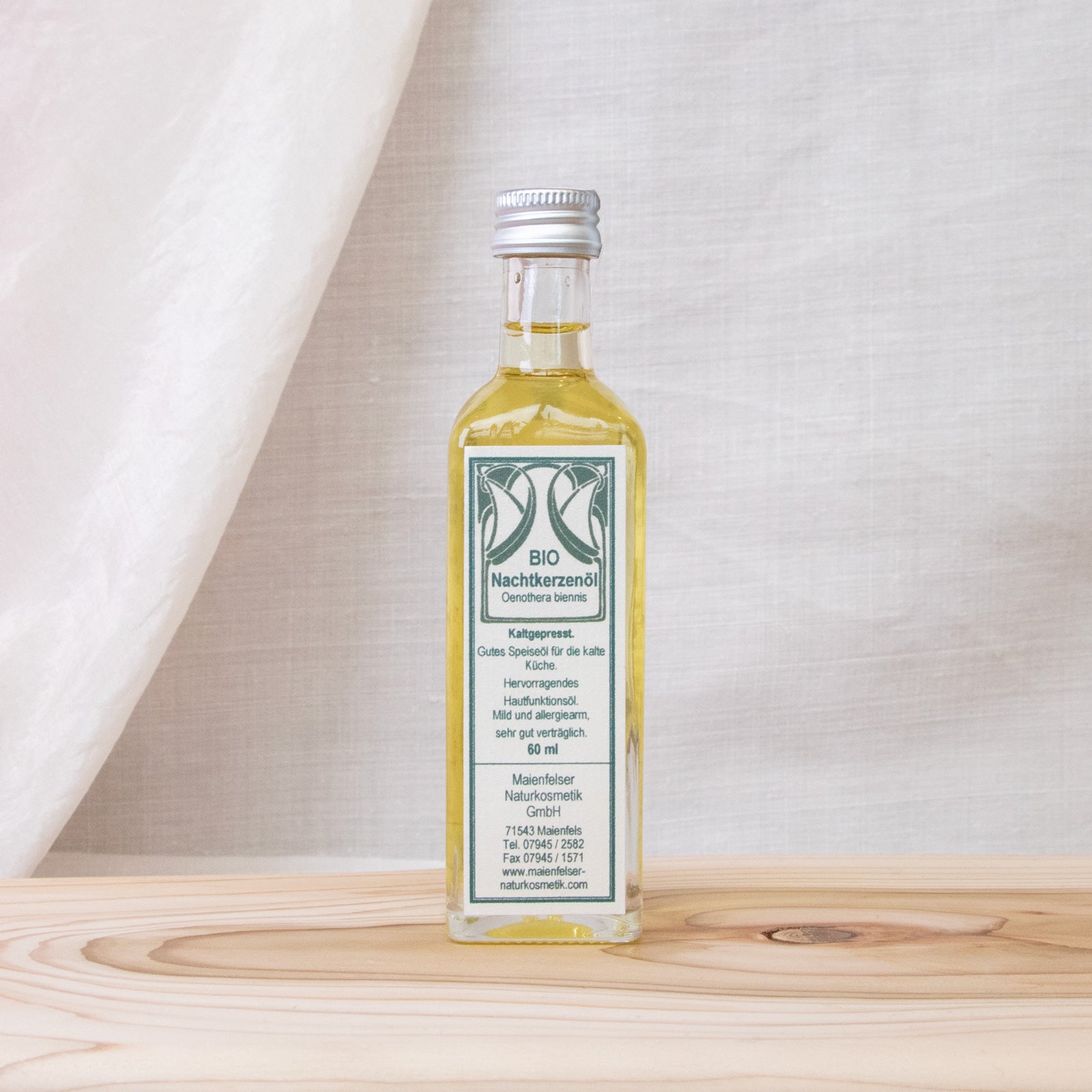 Kosmetische Verwendung: Durch den hohen Gehalt an Linolsäure und gamma-Linolensäure ein hervorragendes Öl für die Hautpflege. Es existieren relativ viele Studien, die die Wirksamkeit des Nachtkerzenöls belegen. Das Öl regeneriert und unterstützt den Zellaufbau der Haut, hemmt den Feuchtigkeitsverlust und ist bestens geeignet bei sehr empfindlicher, schuppiger und trockener Haut. Doch auch bei Mischhaut und Tendenzen zu fettiger Haut mit Hautunreinheiten hat sich Nachkerzenöl bewährt.