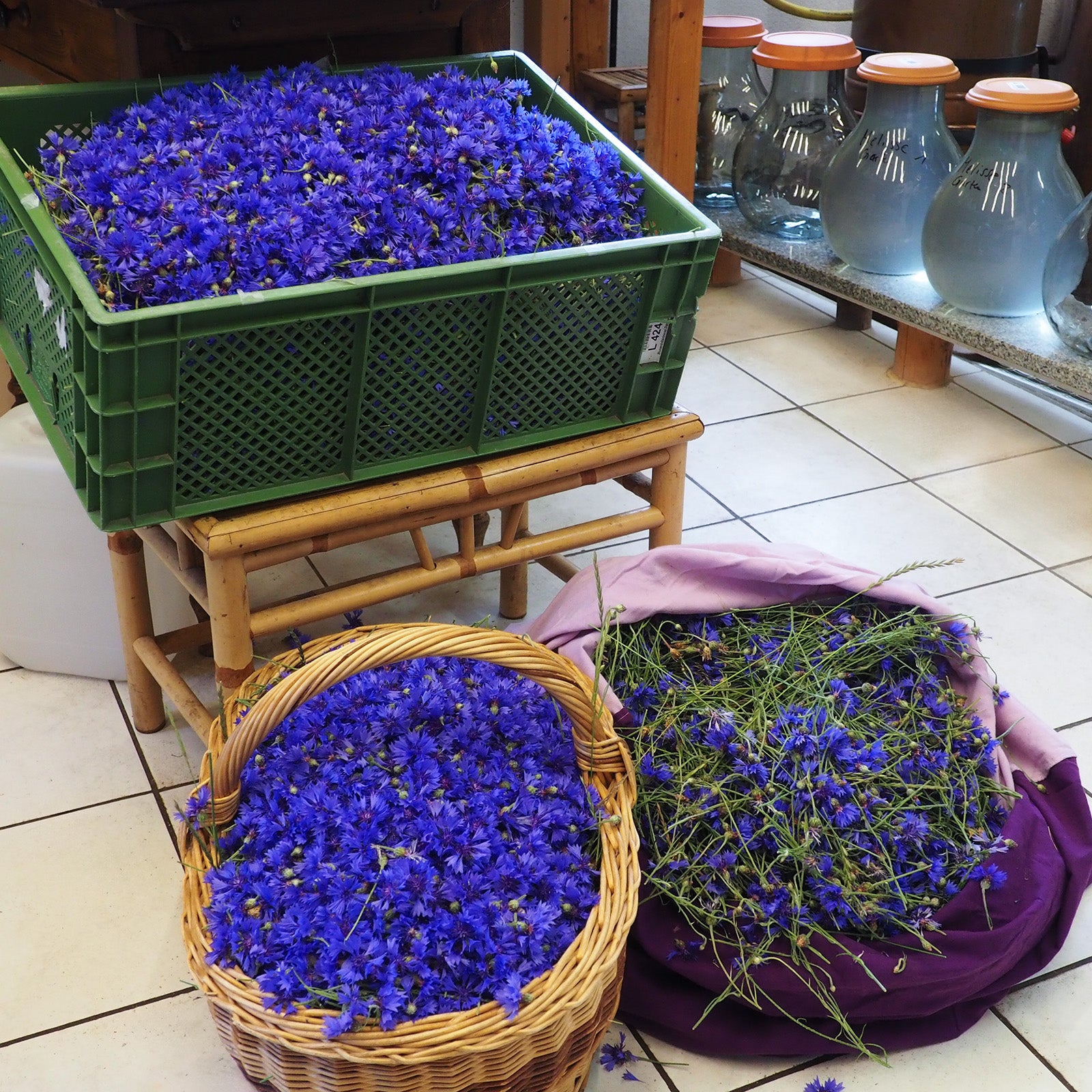 Wir destillieren in einem Verhältnis von 1:1, um besonders intensive Wässer zu erhalten. Bei uns sind sie kein Abfallprodukt der ätherischen Ölgewinnung, sondern ein eigenständiges, wertvolles Pflanzenwasser. Alle Rohstoffe stammen überwiegend aus eigenem kontrolliert biologischem Anbau oder sorgfältiger Wildsammlung – Details dazu finden Sie in den jeweiligen Produktbeschreibungen.