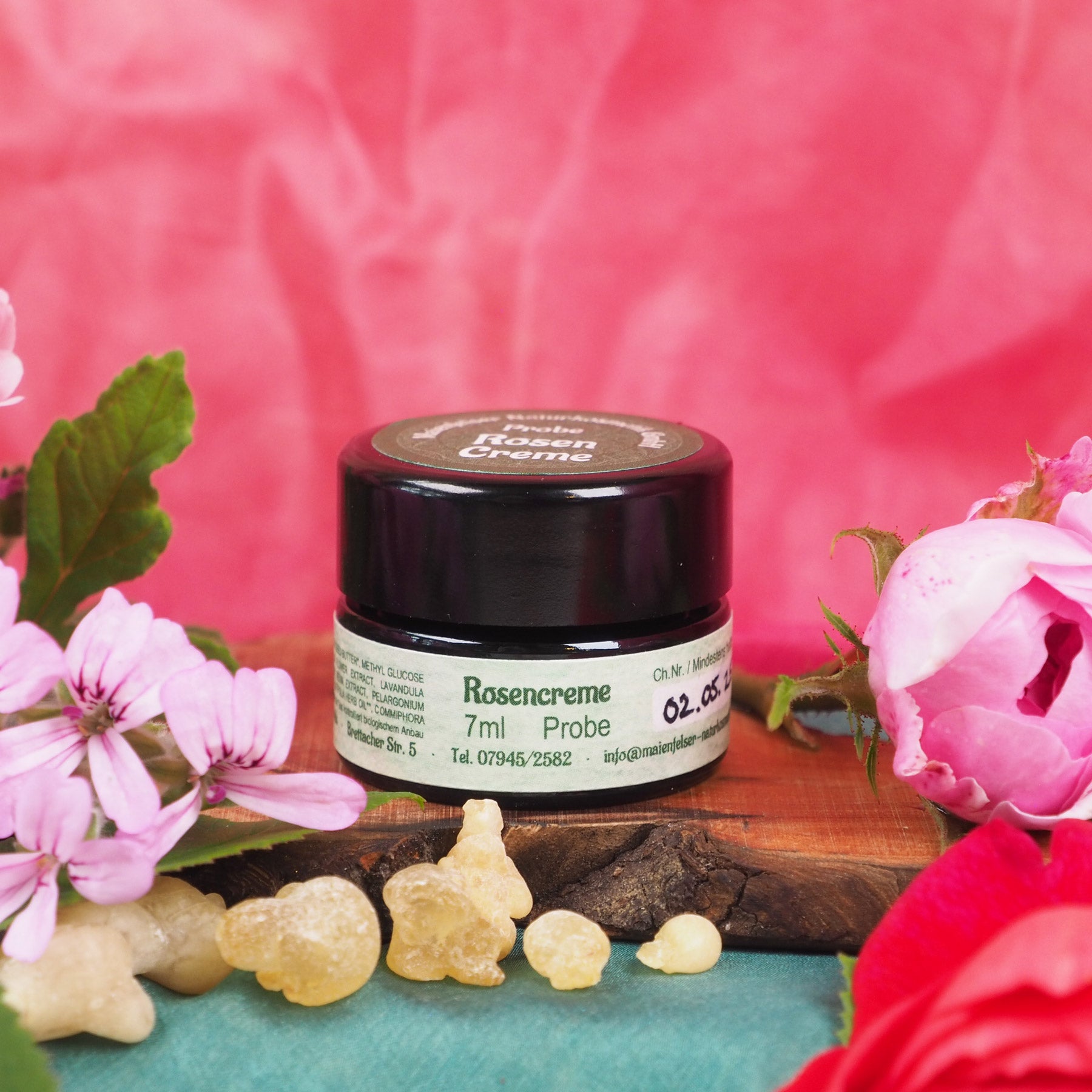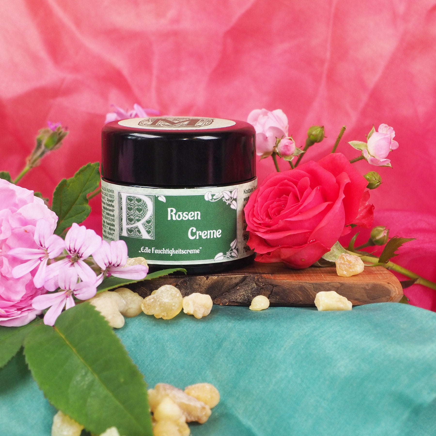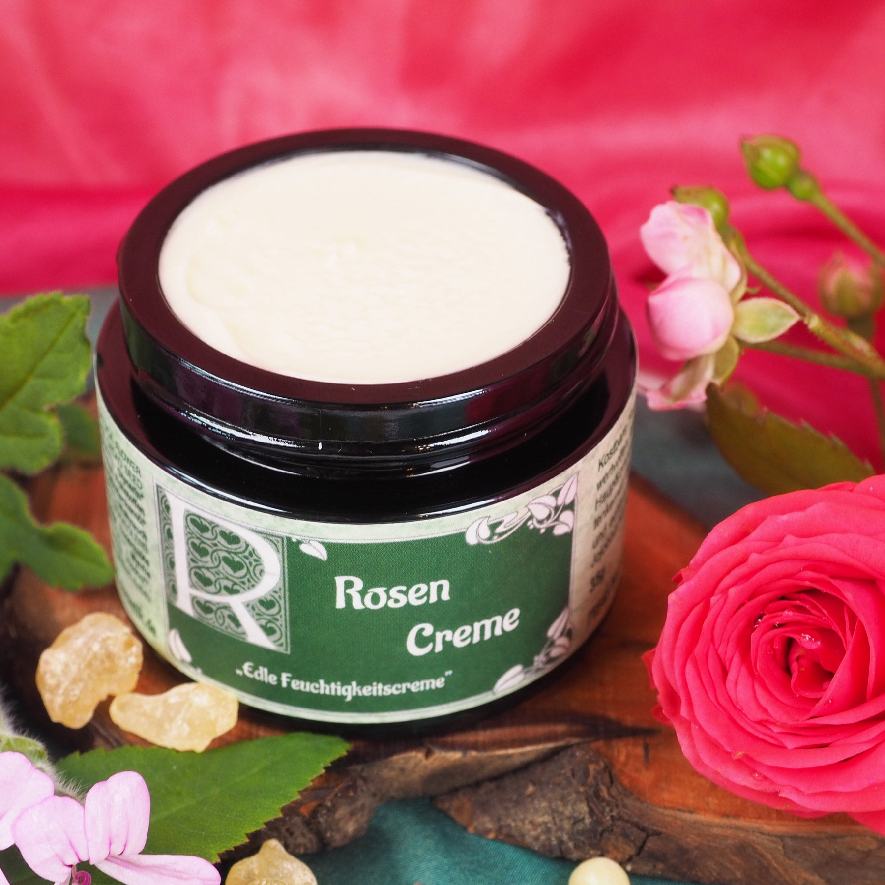 Eine unserer beliebtesten Feuchtigkeitscremes durch die wertvollen Inhaltsstoffe. Nicht ganz so luxeriös wie unsere Rosen Alchemistica Creme, aber immer noch edel und kostbar. Das fette, kaltgepresstes Öl der Moschusrose aus den Hagebuttenkernen, das Cuvée Bio-Rosenwasser (Demeter) und echtes äther. Rosenöl sind die Hauptkomponenten. Die weitere ausschließliche Verwendung von kaltgepresstem Jojobaöl und der Kakao- und Sheabutter runden diese Feuchtigkeitscreme ab. Für jede Haut.