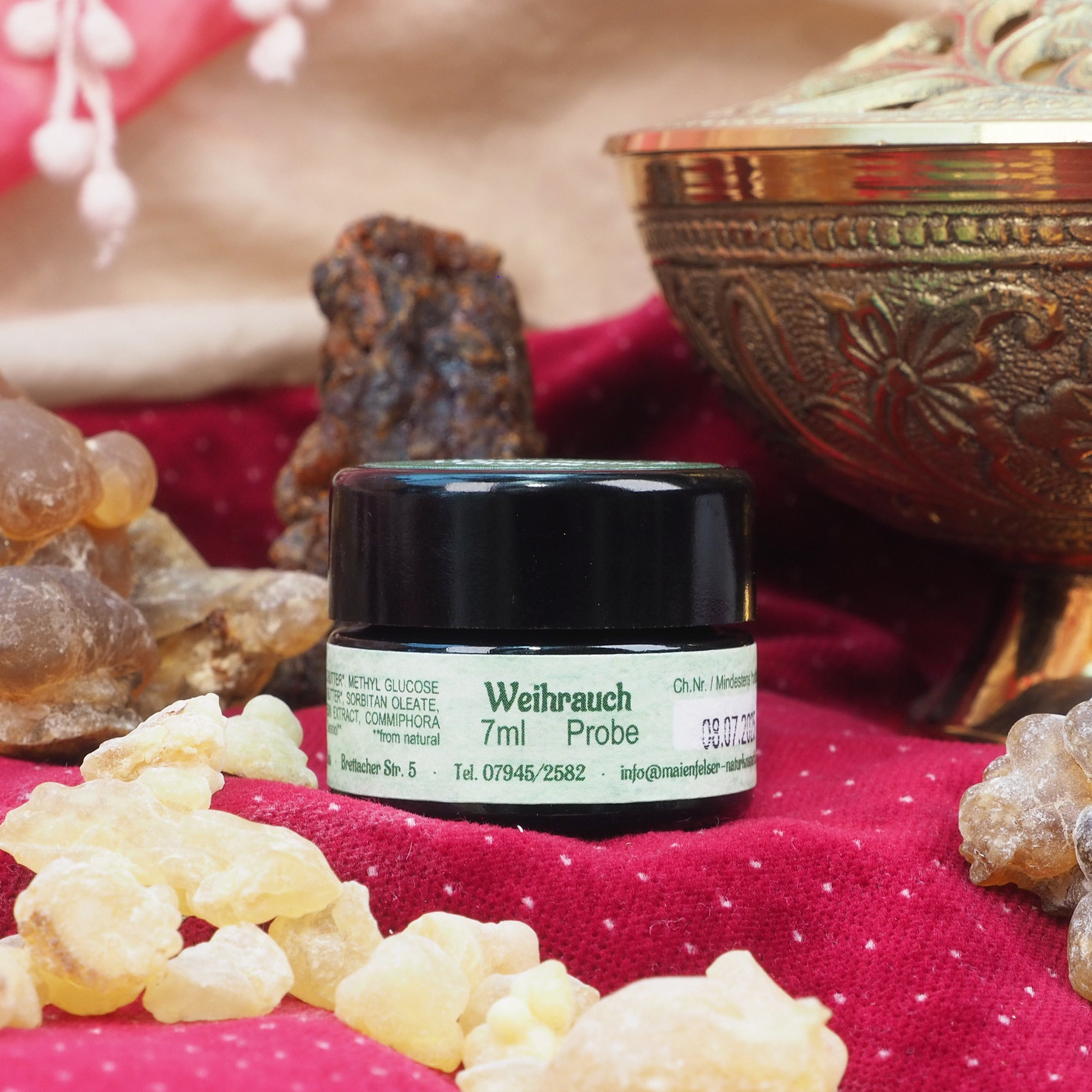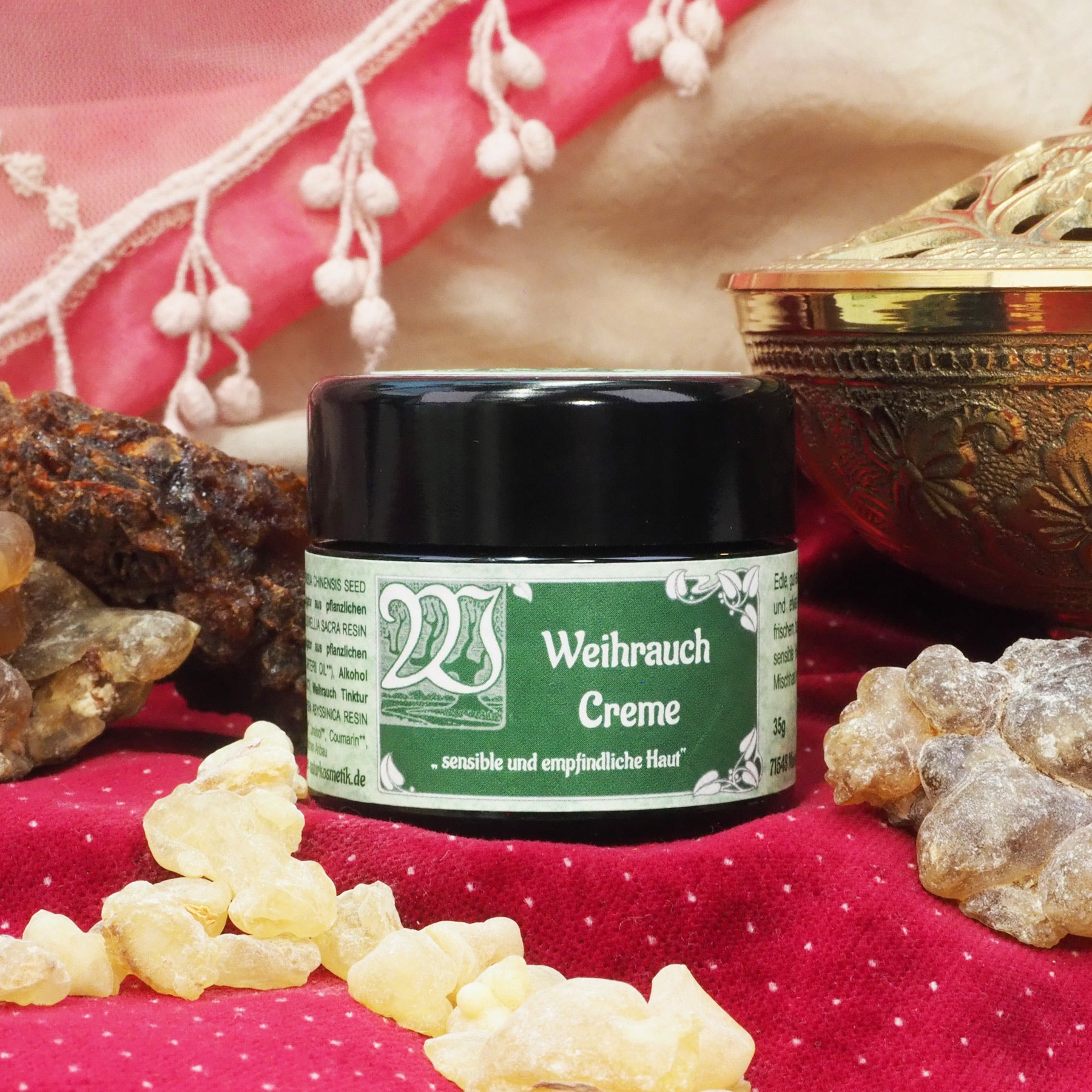 Edle Feuchtigkeitscreme mit viel Weihrauch und etwas Myrrhe bei sensibler , empfindlicher Haut. Zieht gut ein und klebt nicht.
